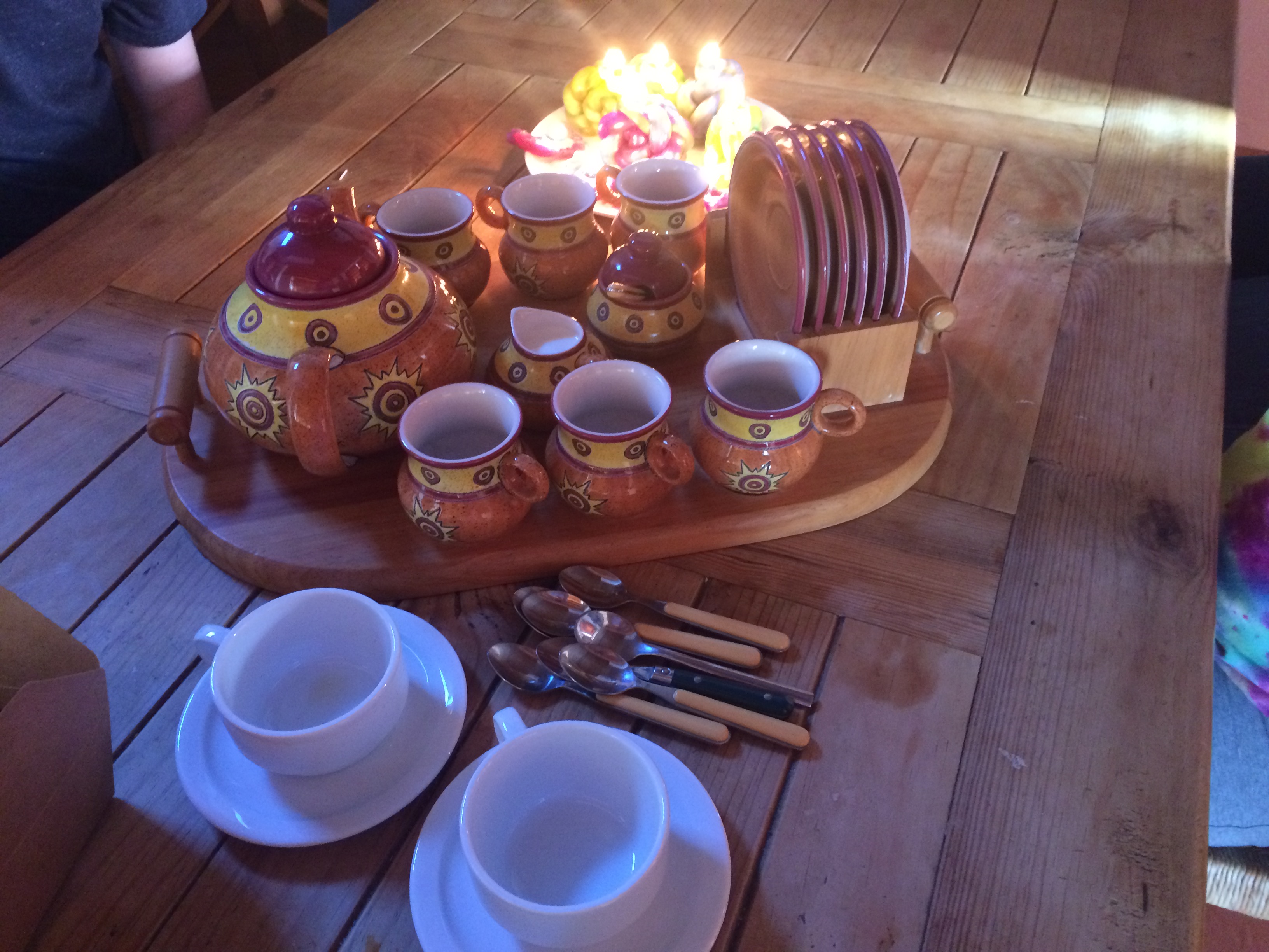 Our new table has arrived. Or should I say tables? We couldn’t find one big enough for ten, so we bought 2 smaller ones and put them together. The next birthday celebration can be held at home!